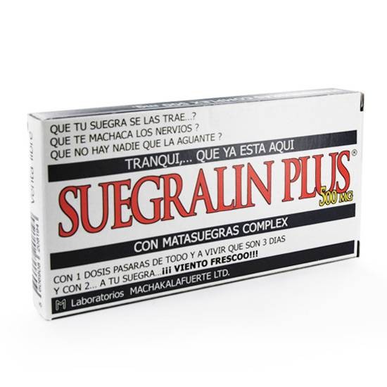 ¿Que tu suegra se las trae? ¿Que te machaca los nervios? ¿Que no hay nadie que la aguante? Tranqui,... Que ya está aquí Suegralin Plus 500 mg con matasuegras complex.