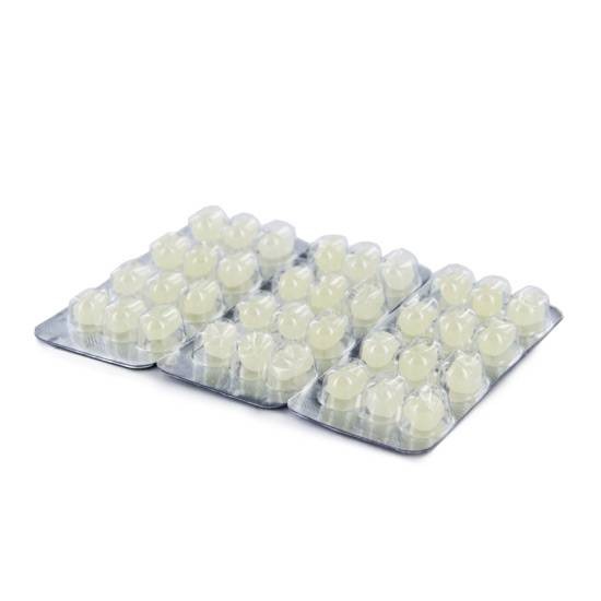 Contiene 48 caramelos de azúcar con aroma a frutas.