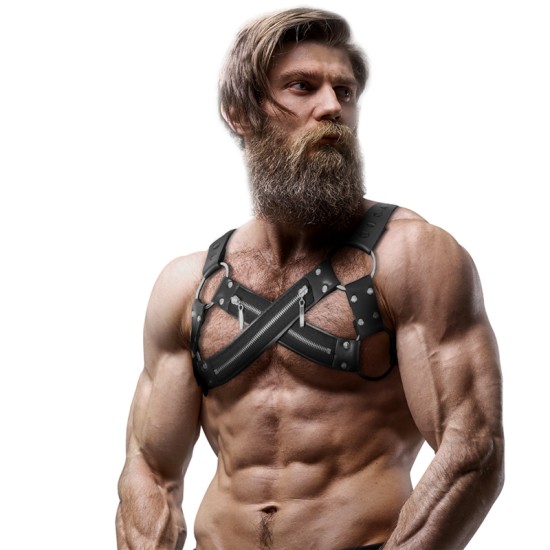 ARNÉS BULLDOG AJUSTABLE NEOPRENO PECHO CRUZADO CON CREMALLERAS HOMBRE - FETISH SUBMISSIVE ATTITUDE