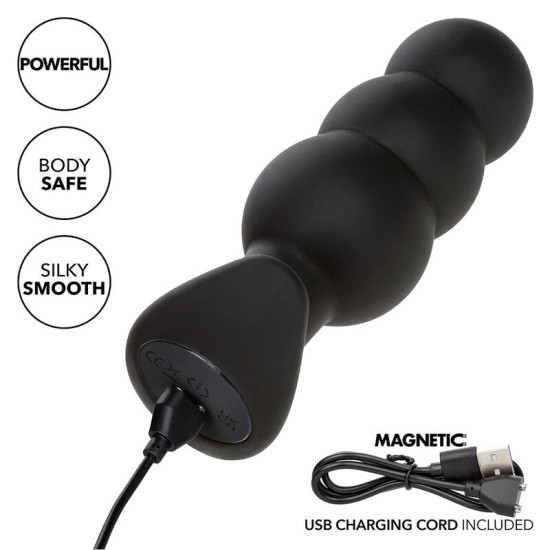 ROCK BOTTOM PLUG ANAL CON CUENTAS 10 VIBRACIONES SILICONA NEGRO - CALEXOTICS