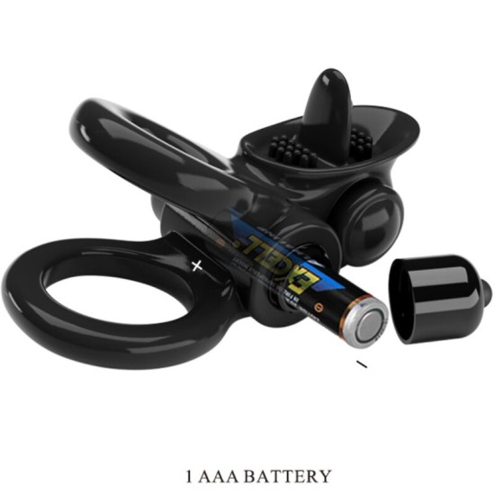 PASSIONATE RING DOBLE ANILLO VIBRADOR + ESTIMULADOR CLÍTORIS NEGRO - PRETTY LOVE